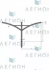 Изделие имеет два ответвления для крепления светильников с возможностью индивидуальной настройки угла наклона. Кронштейн изготавливается из высокопрочной стали толщиной от 3 миллиметров. Конструкция предусматривает различные варианты установочных мест и высоты вылета от 0,8 до 2,5 метров. Производство позволяет изменять конфигурацию изделия под конкретные проектные задачи.